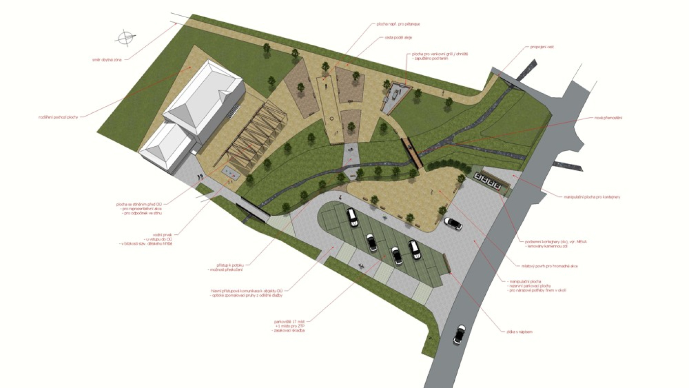 Za vzniklé omezení se omlouvám. Těšit se ale můžete na nové a hezčí prostředí – vznikne tu moderní parkoviště, bezbariérový chodník, prostor pro konání prodejních trhů nebo stání pojízdné prodejny. Část plochy bude navíc upravena jako místo pro odpočinek a příjemnou relaxaci.